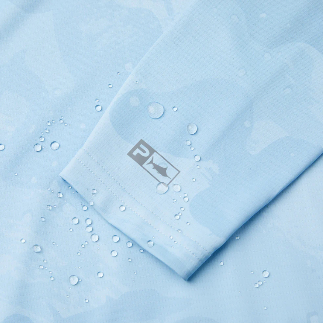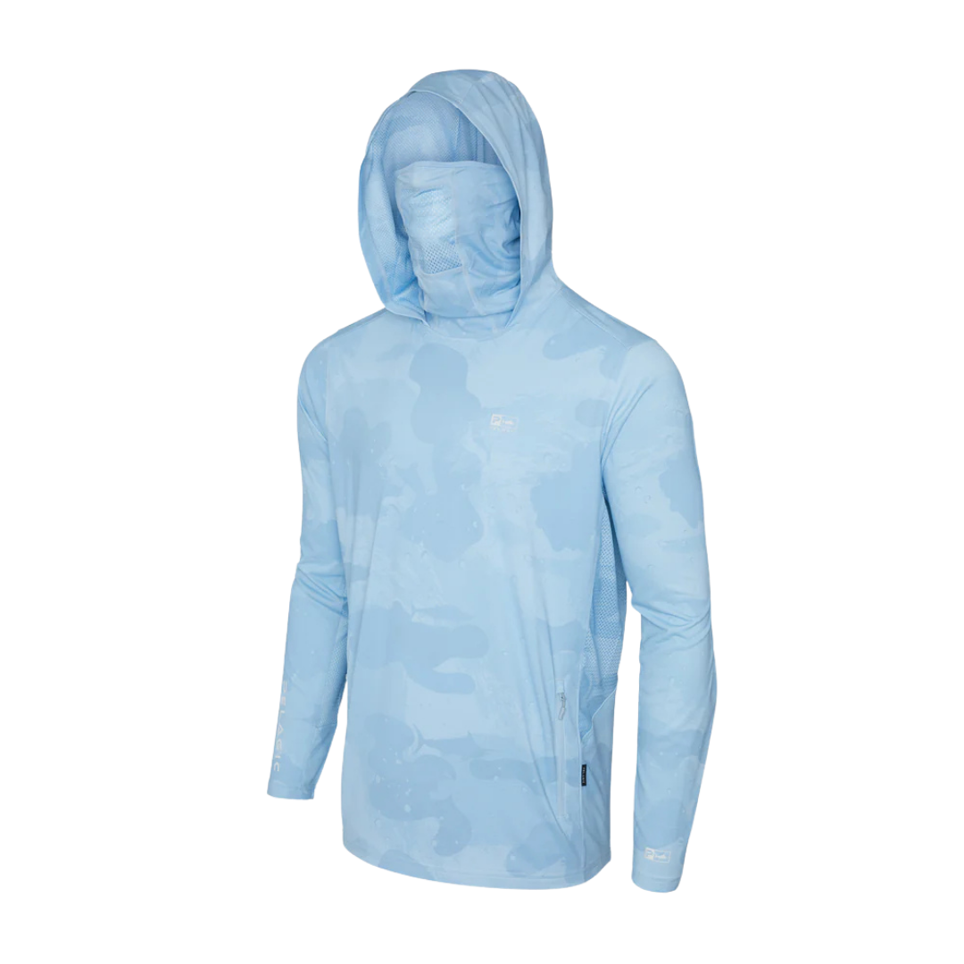 The Exo-Tech provides 360° protection for long days in the sun. Featuring UPF 50+ protection, recycled 4-way stretch fabric with PFAS free water & stain repellency, integrated face mask, zippered pockets and strategic ventilation for airflow.