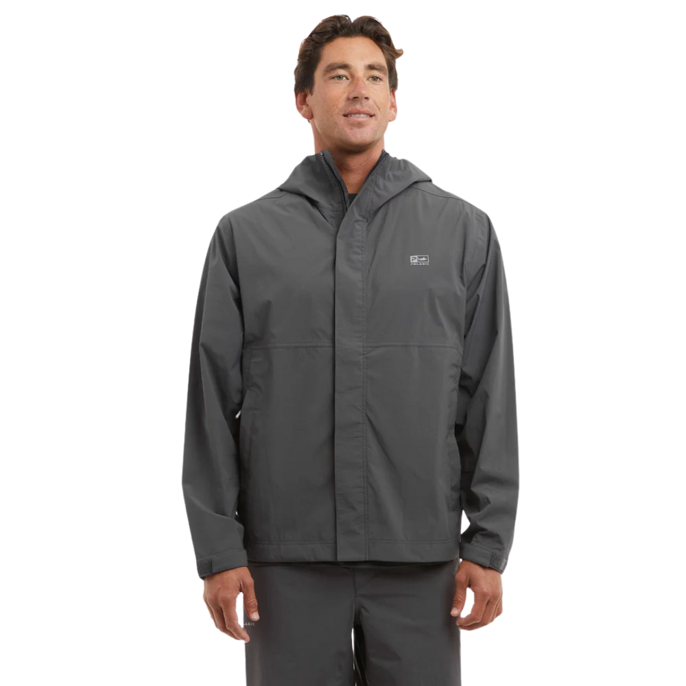 The Squall jacket is ideal for light to moderate rain. Featuring recycled nylon fabric, 2.5 Layer 10K/10K breathable shell, taped seems, water & stain repellency, zipper hand pockets, adjustable cinch hood and zippered packable pocket for easy stow away on a boat or in your bag.