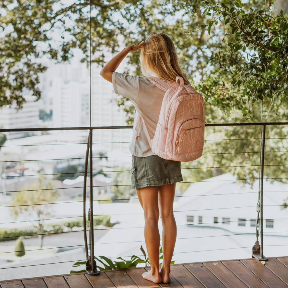 Embrace your colorful side with the Big Love backpack. Made of durable, quilted fabric, this spacious knapsack has one large, zippered compartment, a dedicated 15" laptop sleeve, side water bottle pockets, and a convenient front pocket to organize all your pens and pencils.