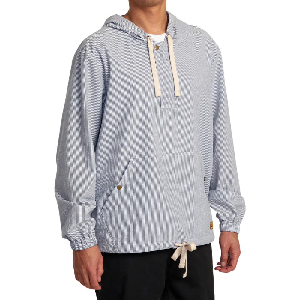 Style your next adventure with RVCA's Exotica Anorak Jacket. Crafted from partially-recycled weather-resistant taffeta fabric, this hooded pullover jacket features a kangaroo pouch pocket with snap closure, a quarter-zip at the neck, and an adjustable drawcord hem to block out the wind and cold.