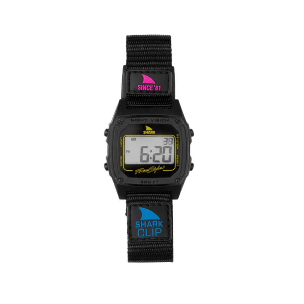 Flashback to 1981 when wetsuits were pink, VJ’s were a thing, neon yellow was the new black, and Freestyle, the original surf watch, was born. Our Since ’81 limited edition series celebrates the iconic Shark in all its glory, featuring custom strap patches and throwback colors bright enough to make Jesse’s girl jealous. Like all Shark Watches, the Shark Clip is backed by our limited lifetime warranty.