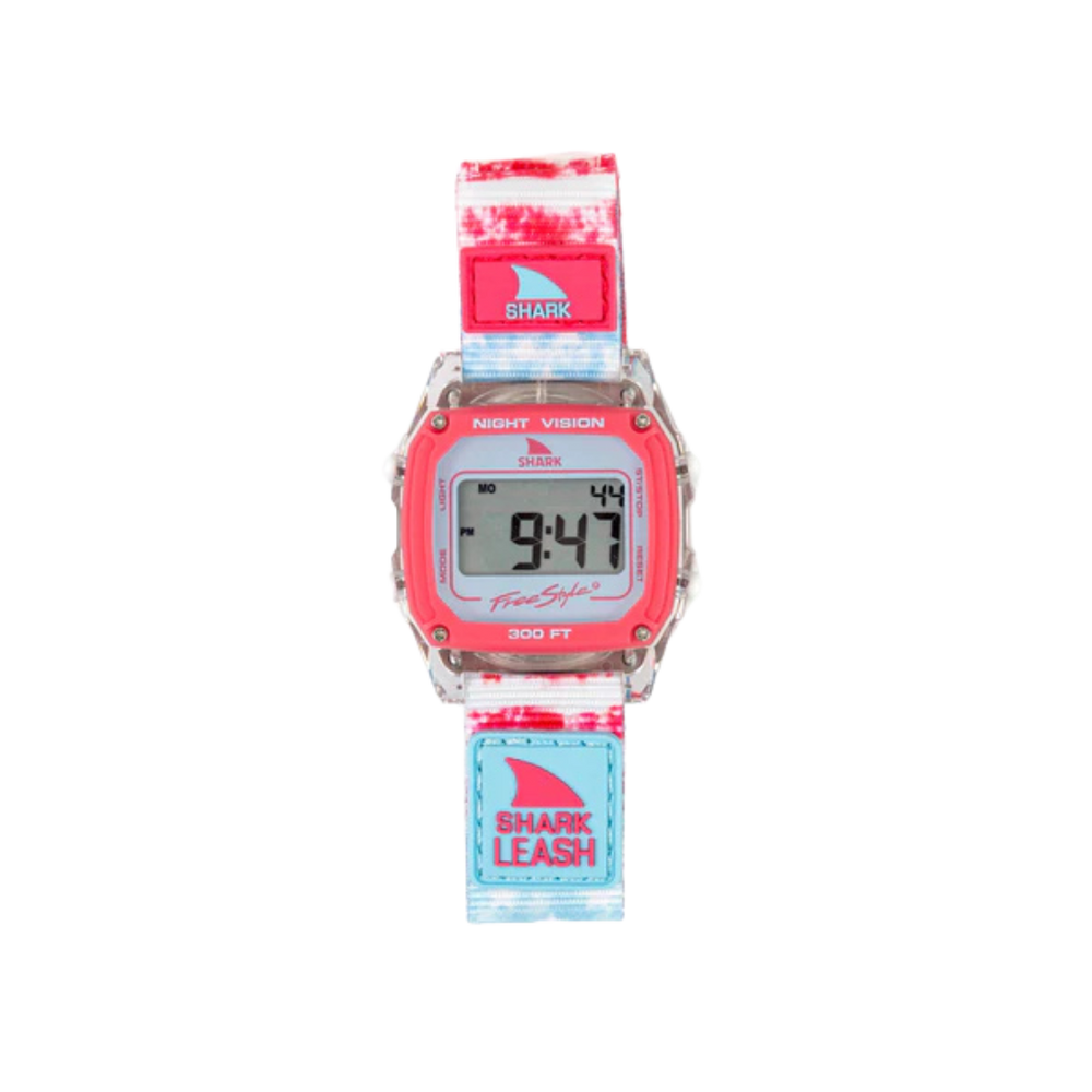 The crystal clear case on this watch is highlighted by the vintage watercolor American flag design splashed across the Shark Leash strap. This digital watch features dual time/date/alarm with stopwatch, heat timer, Night Vision backlight, and it’s backed by our Limited Lifetime Warranty. This limited edition collab is gonna disappear fast! Grab yours now and show your stoke for surfing and support Caroline as she takes on the world with this killer watch!