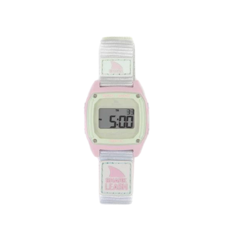 Catch beachside vibes with Shark Leash Outer Banks from the Sol Surf Collection by Freestyle Watches. Rocking the iconic Shark Leash strap that defined 80s surf culture, Outer Banks digital watch blends retro charm with modern functionality. With a hook and loop closure inspired by vintage surfboard tethers and essential digital features, it tracks your endless summer days. Muted pastels of lilac, green, and pink evoke those chill beach evenings, while the alarm ensures you're up for sunrise surf sessions. Water-resistant up to 100 meters, Outer Banks is your go-to for every beach adventure, backed by our lifetime warranty.