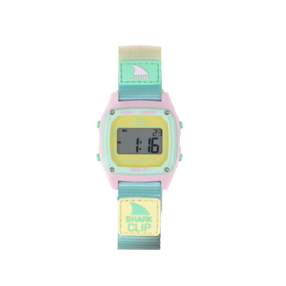 Soft pastels and ocean hues come together in the Scenic Sky digital watch, inspired by the way the sky melts into the horizon at sunset. Its smooth gradient strap and fresh color palette make it the perfect blend of calm and adventure. Designed for life on land and in the water, it features Freestyle’s Shark Clip closure, 300 feet of water resistance, and all the essentials—night vision backlight, dual time, alarms, and a stopwatch.