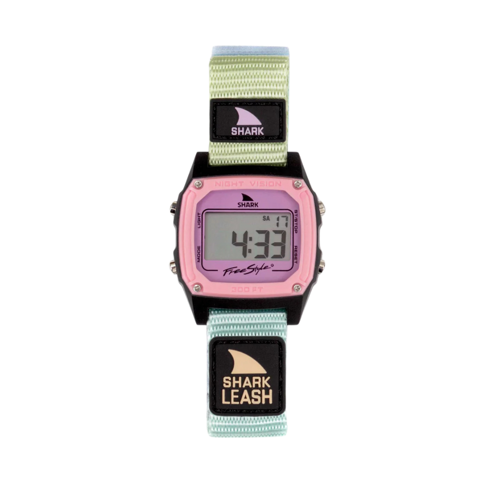 Style: FS101138 They’re Back. The original Velcro band that ignited Freestyle Watches in the late 80’s is back and better than ever. The shark leash’s velcro closure system is modeled after an 80’s style surfboard leash, and is ready to get radical. The Shark Leash comes loaded with standard digital features like time, date, stopwatch, countdown timer, alarm and night vision backlight. Like all Freestyle Watches, The Shark Leash is water resistant to 100 Meters and backed by our limited lifetime warranty.