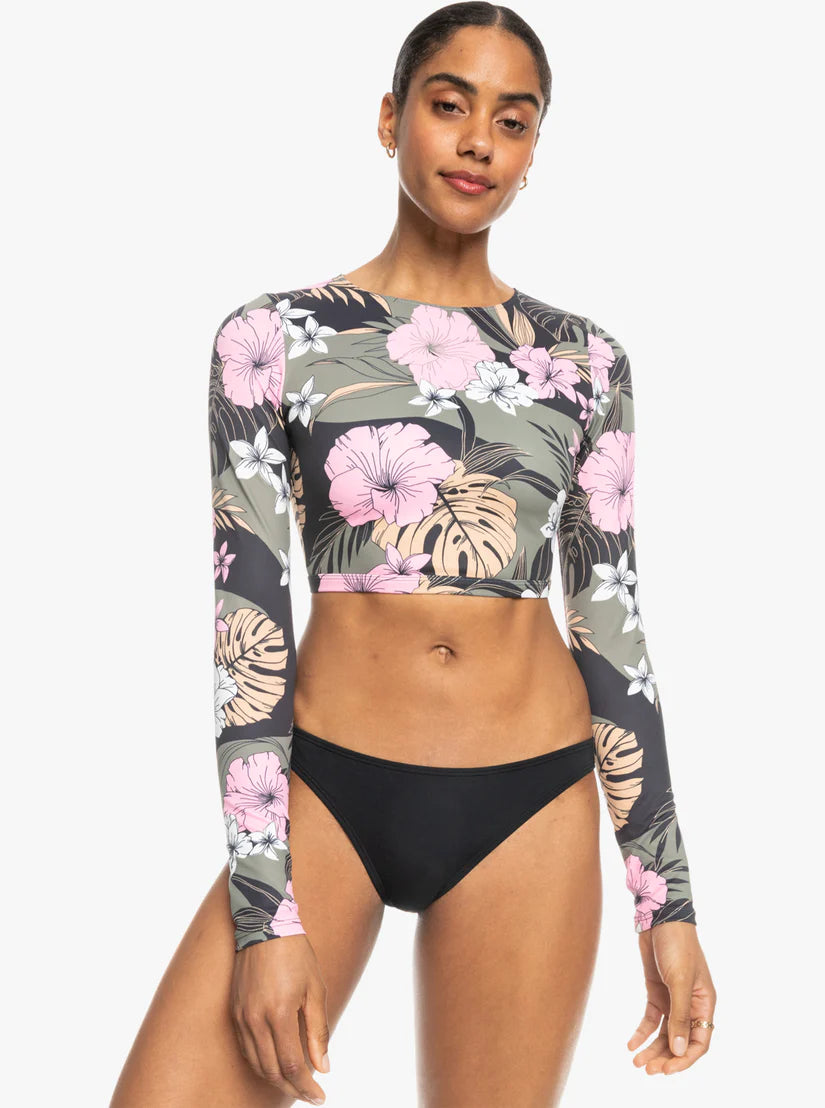 Make waves in the Nose Ride Cropped Long-Sleeve Rashguard from our ROXY Pro Collection. Crafted of soft and stretchy recycled jersey-blend fabric with enhanced chlorine resistance, this fitted surf top has a crew neck, long sleeves, and pullover closure with a bold all-over print.