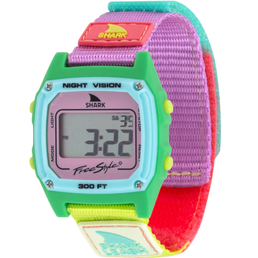 Bold, vibrant, and utterly irresistible, Shark Watch Watermelon is a riot of neon hues and bright colors. From electric greens to juicy pinks, this digital watch is a party on your wrist. With its lively design and essential digital features, Watermelon is ready to accompany you on all your sun-filled adventures.